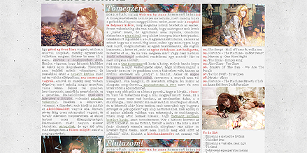 Új design? A főszerepben Demi Lovato. A fejléc szétesett és kissé összecsapott munka, a minőségről nem is beszélve - legközelebb mindenképpen figyelj oda, hogy a lehető legjobb minőségű képeket használd fel! De nem csak Demi képei, de az elemek sem fényesek. Ráadásul az { jel oldalt narancssárga és valahogy ez az árnyalat egyáltalán nem találó Demi képeihez jön le. A másik nagy hibája a dolognak - a már említett minőségen kívül - a túl sok, össze-vissza pakolt elem. A kevesebb néha több! A kódolás sem sikerült annyira jól: a modulfejléc ötlete nem lenne rossz, de ehhez a fejléchez mérve már túlságosan is erőteljes, bántja a szemet. A modulháttér "koszocskái" néhány helyen belelógnak az egyébként rendben lévő alapbetűkbe és ez zavar az olvasásban. Továbbra is úgy gondolom, hogy a Demi-s képek alapján inkább a piros-barna kerülhetne előtérbe, de nem a narancssárga, így ezek a formázások nálam felejtősek. Az oldalmodulokba került fekete-fehér képek nem mutatnak jól az összképben, nem illenek ide. A chat nagyon "passzív", kívülálló, színt neki, amitől kicsit jobban ideillő lesz! Az első két oldalmodul alján amúgy nagyobb felesleges helykihagyás van, le vele. A főoldalon egyes hírek között szintén kilométernyi rés tátong, szétszórttá teszi a dolgokat a lapon! Összességében erről most nem vagyok jó véleménnyel, igazából semmi nem fogott meg benne és kicsit összecsapottnak érzem az összképet, mint ahogy ezt már írtam az elején. Egyszer fent, másszor lent, az előző kinézet nem volt rossz, ez viszont most nem nyerte el a tetszésemet.