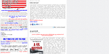 Új design? A főszerepben Ash T. kisasszony - nos, az ötletek nem voltak rosszak, de nem tudom hová tenni miért lett ennyire sötét a dolog, szerintem nem mutat így annyira jól, sokkal többet ki lehetett volna hozni a dologból. Az még okés, hogy a háttér fekete és a "fejléc" megoldása is rendben van, nekem a modulháttér feketesége nem tetszik. Valahogy úgy érzem hogy az egészhez sokkal jobban állna egy világosabb, fehéresebb textúra, mint a most látható. A kódolással a modulhátteret leszámítva nincs gondom, bár a kiemelt formázást nehezen szokta meg a szemem, furcsa volt eleinte, de végülis elmegy. Az Ashley-s képek az oldalmodulokban a virágos kerettel nagyon aranyosak - éppen ezeket emelné jobban ki a világosabb kód. Akárhányszor ránézek a lap összképére, csak az ugrik be, amit az első mondat óta írok - valamiért nem szimpatikus nekem így feketén-sötéten a dolog. Tényleg nem lenne rossz és látom benne a potenciált, de a végeredmény, a lap összképe mégis kiaknázatlan lehetőséget takar, az ilyeneket pedig nem szeretem. Nem rossz, de lehetne sokkal jobb... kár érte!