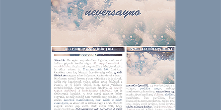 Új design? Hű, hát nem is tudom, hol kezdjem. A fejléc ötlete tetszik, és a megvalósítás sem lenne rossz - bár az üdvözlőszöveg túl sok és túl kicsi a betűmérete, alig olvasható. A fejléc képeinek árnyékolását világosabbra kellett volna venned, és a "just kaya" felirat kékje is lehetne pár árnyalattal világosabb. A fejléc ettől eltekinte ügyes munka, tetszik. A CSS annál kevésbé. A modulfejlécek alsó kerete túlságosan sötét, elég lenne, ha csak néhány árnyalattal lenne sötétebb a háttérnél. Az oldalmodulok címéről hiányolom az árnyékolást, ami a középső modulfejléceken pedig szintén túl sötét. A táblázatkódot nem sikerült jól használnod, mert a címek fölött és a tartalom alatt van egy hatalmas fehér rész, valószínűleg becsúszott egy enter: szerkesztői nézetben vedd ki a pipát a háttérszín mögül, vagy törüld ki azt az entert onnan. Ugyanakkor oda kellene figyelned a betűméretre és -típusra is: az oldalmodulokban Tahoma és túl kicsi, ahogy az első bejegyzésben is, míg ezt a hibát korrigáltad az utolsó két bejegyzésben egy 12px-es Ariallal. Azt kellene használnod oldalt is! Az alapbetűszín is túl viláos, valamint ajánlom a sorkizártra igazítását, mert hol középre, hol balra van, és így nagyon össze-vissza. A középső táblázatokban egy kicsit ki kellene világosítanod a szerző és dátum sávjának hátterét, mondjuk olyanra, mint amilyen az oldalháttér. A chat betűi pedig túl nagyok a lap többi részéhet viszonyítva, ide is a 12px-es Arialt ajánlom. A végére pedig hadd említsek még egy pozitívumot: a menü megoldása nagyon ötletes lett!