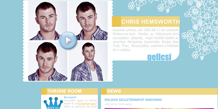 Új design? Chris Hemsworth a főszerepben, mellette pedig némi sárga és kék szín dominál. A fejléc elrendezése nem rossz, egyszerű, de pont elég - a "bemutató" rövid szöveg viszont túl nagy a lapon lévő többi betűmérethez, talán lehetett volna kisebb méretben használni valamint az se annyira tetszik, hogy a "Gellcsi" felirat lelóg. A kódolás... a modulfejléc kifejezetten tetszik, a modulháttér rendben van, az alapbetűszín rendben van. A formázások mind passzolnak ide, nincs velük gondom. Az eliteknél eléggé furcsa, hogy az elkészült ikonok és az üres helyek kék ikonja más formájú - nem mutat valami jól, egységesítést kérünk! A főoldalon a mindenféle érdekes vegyes hírekhez kikerülő képek minősége nem valami fényes, belerondít az összképbe, tessék odafigyelni mivel dolgozunk, milyen az alapanyag! A rendezettség viszont nem rossz az oldalon és az összhatás is megvan. Van, ami tetszik, van ami nem annyira - de összességében elégedett lehet ezzel az ember, nem lett rossz!