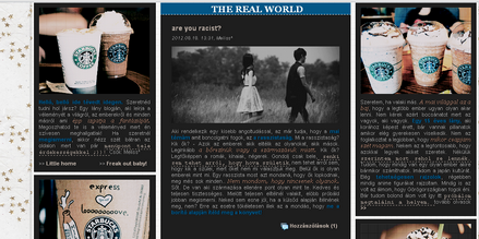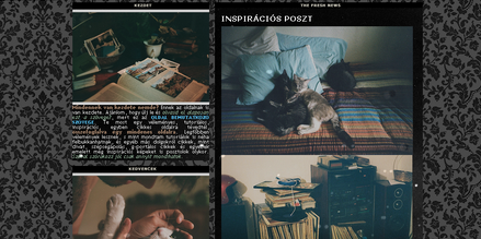 Első design: Hű, ez olyan aprócska, aranyos blogos külső - ami ráadásul sötét. A háttérnek használt textúra tök jó és tetszik a moduldobozkák felépítése is. A modulcímeket és az alapbetűket viszont picikének találom - nagyon helyesek így persze és elmennek, de legközelebb lehetnének nagyobban? A hosszabb szövegeket fárasztó ekkora mérettel végigolvasni. Az oldalmodulokba került képek, melyek a képes néznivalót adják, mind rendben vannak. A betűszínekkel amúgy nincs gond, beleértve a környezetüket feldobó formázásokat is. A kellő rendezettség simán megvan és átlátható a lap. Érdekes, de mindenképpen tetszetős az oldal összképe, mely nekem eléggé bejön. Reméljük a következő is ilyen szuper lesz, ehhez pedig grat, szép munka!