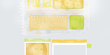 Új design? Nina mellett Ian is főszerepet kapott a dizin, ami összességében remek lenne, ám pár dolog kicsit ront az összképen, például, hogy a fejlécen lévő képeknek olyan hatásuk van, mintha el lennének mosódva. Ez egy ötletes megoldás, de itt nem igazán mutat jól. Viszont a fejli közepén lévő felirat remek lett: nagyon szépek a színei és szuperül lett elhelyezve. :) A háttér kiváló összhangban van a fejléccel, meg a css kóddal is. Utobbiról csak annyit, hogy a fejlécből kivágós megoldás itt nem mutat valami jól és mondjuk egy szürkés-zöldes szín jobban passzolna. Egyébként a css-el más probléma nincs, hiszen tökéletesen olvasható minden, a formázások, színek is okésak. Igazán szép munka lett. :)
