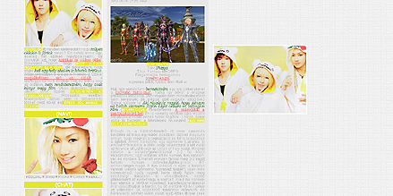 Második design: Vanessa a főszerepben és egy oldalfejlécképes megoldást láthatunk. A képek nem lennének rosszak, de szerintem túlságosan sok rajtuk a színezés. A modulfejléc szerintem túl élénk, lehetne valami másabb, visszafogottabb. a modulháttér és a lap háttere viszont tetszik. Az alapbetűszín lehetne egy árnyalattal sötétebb, hogy könnyebben lehessen olvasni. A formázások többsége jó, de a dőltnek mennie kell - irritálja a szemet és nem lehet jól elolvasni! Az elitképek lehetnének jobb minőségűek és rendezettebb lenne a dolog, ha középre lennének igazítva (csak a képek, a szövegek nem). A chat nekem nem illik a képbe: honnan az a két kék, amiket ott látok? Le velük és mehet társként az olvashatatlan sárga is, ráfér a chatre egy színátírás! Nem rossz ez a külső, de tele van hibákkal és az összképe nekem kicsit túl sok, túl élénk (leginkább a sárga miatt) és a chat tönkreteszi az összhatást. Ez most annyira nem lett jó, de ha legközelebb odafigyelsz a hibákra, akkor biztosan sokkal jobban fog sikerülni!