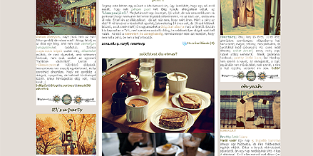Új design? Egy őszi hangulatú, tipikusan blogos kinézetet láthatunk a lapon. A fejlécet kisképek helyettesítik, amelyeknek nagyon jó a hangulatuk és a színezésük sem rossz, bár a felső két képen lényegesen jobban néz ki, mint a legalsókon - mintha nem is ugyanaz a színezés lenne. A CSS alapját a kisképek alkotják, így jó az összhang - de a helyedben egy picit mindegyik kiemelés színén sötétítenék, mert így inkább elvesznek, mint kiemelnek. A sorelválasztók aranyosak, de bár színvilágban passzolnak a designhoz, hangulatban már sokkal kevésbé. A modulok szélén hagynod kellene 3-4 pixel behúzást (padding), hogy ne érjen ki a szöveg teljesen a doboz széléig, valamint mindenhol használhatnál sorkizártat, sokat javítana az összképen. Ahogy a mpdulfejlécek betűtípusának cseréje is, túlságosan pixelesek azok a betűk. :) A chat rózsaszín keretét nem értem, a helyedben lecserélném fehérre. A Mit szólsz hozzá? sáv betűi túlságosan vastagok és sötétek, így túl hangsúlyosak - majdnem annyira, mint a modulfejlécek. Ezen is jó lenne változtatnod. Végeredményben a hangulat nagyon kellemes, de az összhatás igencsak elsietettnek tűnik...