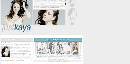 Új design? Demi látható a főszerepben és egy roppant letisztult, egyszerű dizi tárul a szemünk elé az oldalon. A fejléc simán "egyszerű,de nagyszerű" kategóriás, ami nekem nagyon bejön benne: nem sok, nem kevés, elnyerte a tetszésemet. Demi középen lévő képe aranyos, a kis feldobás is jó öltet volt, a navigációs sáv okés - tehát az egész fejléc rendben van. Ehhez hasonló a kódolás is: a moduldobozok helyesek, semmi gond velük, az alapbetűszín olvasható, a formázások mind kellemes, ide passzoló színek. Remekül meg lett találva mindennek a helye és ezen az egyszerű kis lapon megvan a kellő rendezettség. Tényleg nagyon helyes az összkép és megvan az összhatás is - én teljességgel elégedett vagyok vele, mutatósra sikerült. Grat hozzá, szép munka, csak így tovább!