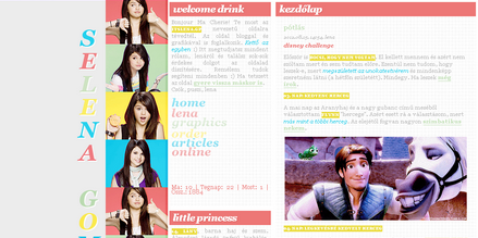 Első design: A fejléc szerepét egy kép tölti be bal oldalt, aminek a főszereplője Selena Gomez kisasszony. Szép képet választottál, de lehetett volna rajta egy picit élesíteni, mert így picit homályos. A felirat viszont szép lett, és a hátteret is jól eltaláltad, bár lehet, hogy valami világosabb fa textúrával jobban mutatna. A kódolásra áttérve, az egyből szembetűnik, hogy hangulatát illetve illik a képhez, de a színek tekintetében már kevésbé lehet ezt elmondani. Az elsők, és legszembetűnőbbek, azok a modulfejlécek. Mindkettő nagyon rikító, de ebben az árnyalatban egyik sem található meg a képen. Még a rózsaszín nem is annyira, de a zöld nagyon elüt. Jobban nézne ki egy háttérből vett, finomabb zölddel. A rózsaszín helyett is használhattad volna pl. Selena hajában lévő színes tincsek közül az egyiket. A kiemelésekkel is vannak bajok, ugyanis a rikító zöld itt sem volt jó választás, ebben az esetben is azt tudnám javasolni, amit a modulfejléceknél is, illetve a sárga ilyen árnyalatban egyszer sem fordul elő a "fejlécen", ide szintén Selena színes tincsei közül tudnám az egyiket ajánlani. A chat-nél szintén ezek a problémák, igazítsd ott is a színeket a "fejléchez". Ami az elitek képeit illeti, nagyon erős bennük a fekete, nem illik a nyárias hangulathoz. Jobban mutatna finomítva, szürkésebben, vagy esetleg színesen.