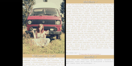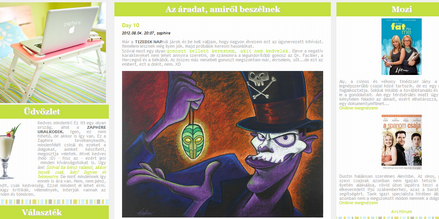 Új design? Még egy nyárias kinézet már? Sőt, ez még nyáriasabb, a vidám színek hatására. A fejléc nekem igazán tetszik, nagyon ötletes munka és a kivitelezéssel sincs semmi probléma: minden egyes elem a helyén és az egész elrendezése is okés. 10/10 pontos simán megvan. A domináló kékes szín amúgy a másik nagy kedvencem a lapról - ezt láthatjuk többek között háttérszínnek is és el kell mondanom, jó választás volt emellett dönteni! A lap szokás szerint egyfajta keretbe lett foglalva - ez a keret felül is, alul is rendben van. A középen alkalmazott modulfejléc szintén okés, illik ide. Oldalt pedig nagyon bejönnek a különleges kis modulfejléckék, az összes szép munka és külön pacsi jár az ötletért. Az alapbetűszín olvasható mindenhol és a formázások is passzolnak az összképbe. A kellő rendezettség megvan. Összességében pozitív véleménnyel vagyok az oldalról, egy tök jó kis összkép tárul elém, ami engem megnyert magának - nem mellesleg pedig megvan az összhatás is. Ez egy személyes oldalon jól mutató, szép munka, grat hozzá! ;)
