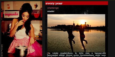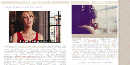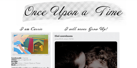 Első design? Ahogy az előző oldalnál itt is egy oldalfejléces megoldást láthatunk. A fejléc egy kitűnően színezett kép, ami nagyon jó választás volt, szerintem még felirat nélkül is szépen mutat. Az egész kinézetet nem bonyolítottad túl, ezért a lapodnak inkább blogos, mint rajongói lap beütése van, s ne érts félre, ez nem hiba, csak egy idő után ez unalmassá válik és valamivel fel kell dobni.. De kanyarodjunk vissza ehhez a dizihez. A háttér színe remek összhangban van mind a fejléccel, mind a css kóddal. Az utobbiról csak annyit, hogy a modulfejléc szinte hibátlan, bár lehetne picit nagyobb, úgy betöltené az ürességet, mert 1.) túl fehér a háttérhez képest a modul színe, plusz a világos szürke szöveg nehezen is olvasható rajta, 2.) keveset írsz például a bejegyzésekhez, emiatt érzem kicsit üresnek a lapot. Formázások terén a félkövér színe egyáltalán nem illik bele az összképbe.