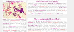 Tartalom? Blogos oldalról van szó, így itt nincs több ezernyi modul - és ez jó is így. Megvan a maga hangulata, de talán a szerkesztő kora sehol sem szerepel a lapon - ez az egyetlen, amit azért valahová besüllyesztenék. Egyébként az egyedi írásmód és kifejezésmód nekem kifejezetten tetszik.