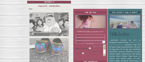 Új dizi? Nina a főszerepben egy sötét, rózsaszín színekkel feldobott közegben. A fejléc... aranyos. Olyan kis egyszerű, meg minden, de nekem elnyerte a tetszésemet. A virág gyönyörű rajta és a lap összes színét ez határozza szerintem innentől meg! A kódolás... a modulháttér összeolvad a háttérrel, de nem komolyabban zavaró tényező, jó ez így. A modulfejlécek pedig rendben vannak. A formázások nagy rész jó, de a dőlt nekem kicsit furcsa, mivel nem egészen világos, hogy ez a lilásabb-kékesebb szín hogyan kerül ide. Pont ugyanígy kérdéses számomra a chatben lévő élénk lilás szín származása is, mely szintén nem passzol ide. Ez két aprócska hiba, de hiba. Magát a lapot átláthatónak találtam és az összhatása meg megvan. Nem lett rossz az összképe, nekem talán ezen a lapon az eddigi kedvencem - grat! =)