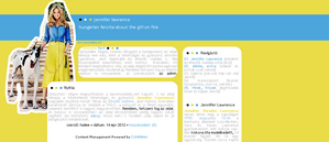 Első dizi? - Egy kék-sárga színek uralta kinézetet láthatunk, remek elrendezéssel. A fejléc nagyon helyes lett, Jennifer ezen képe aranyos és annyira jól meg lett választva róla ez a két domináló szín, hogy én nagyon elégedett vagyok fele. Ez nem sok, nem kevés - ez egy éppen jó munka. A kódolás is jól meg lett oldva, megy az újabb pacsi az elrendezésért: minden tök jól átlátható és minden tökéletesen olvasható így! Tehát nincs baj se a formázásokkal, se az alapbetűszínnel. Az oldalmodulok rendezettek és jól elkülönülnek egymástól pont annyira, amennyire az szükséges. A chat is beleillik a képbe, a háttér pedig a fejléccel együtt adott, tehát az is tökéletes. Összességében az a véleményem, hogy a szerkesztőnek volt egy remek ötlete, amit kiválóan meg tudott valósítani - ennek eredményeképpen pedig megkaptuk ezt a nekem nagyon tetsző összképet és nem mellékesen van összhatás is. Engem megfogott a lap, gratulálok hozzá, mutatós nyitó dizi! ;)