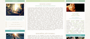 Új diziről? Hoppá, mi történt itt? Ez egy szuper öltet volt és szépen meg is lett valósítva! Ennek a kinézetnek a különlegessége, hogy elvileg ne add sok néznivalót és mégis... van mit nézni! A picuri képecske, ami elvileg a képi látnivalót adja, nagyon szép, jó választás volt, a színei szuperek - és ez lényeges, mert ennek a kis képnek a színei határozzák meg a lap további árnyalatait. A háttérre ment a pacsi és a navigáció is nagyon bejön. A görgető szerintem így is jó, de talán egy kicsit lehetne magasabb, nem sokkal, csak egy kicsivel! Egyébként az alap betűszín olvasható, a formázások pedig ügyesen feldobják a kinézetet. Nekem meglehetősen tetszik most így a lap! Tök jó, hogy ezekből a kis, egyszerűnek látszó elemekből egy ennyire szép és jó bloghoz méltó kinézet bontakozik ki! Az összképe tehát nekem mindenképpen tetszik és nem kérdéses, hogy itt minden harmóniában van mindennel - vagyis megvan az összhatás is. Grat hozzá, imádom! ^^