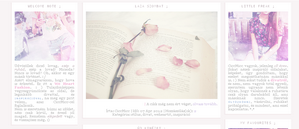 Új diziről? Megértem, miért ezekből a képekből készül el az új kinézet: imádnivaló az összes! A fejléc a maga egyszerűségében megfogott, jó ez így. Viszont a háttér tényleg elég üres... hmm, ötletek, ötletek.. megvan! Oldalra, a fejléc két oldalára, lehetne betenni két sávot, középen meg maradna ez a mostani szín. Tudjátok, egyfajta keretre gondolok! A kódolásban az nem tetszik, hogy az egész beleolvad a háttérbe. Javasolni tudom, hogy a mostani szín mondjuk kettővel sötétebb árnyalata legyen a moduldobozok színe és akkor szerintem jobb lesz. Most eléggé rendezetlenné teszi ez az egybeolvadás a modulokat, így nem valami szép. A chat viszont okés és a formázások is mind jók. Tehát szerintem két dologra lenne szükség: a háttér feljavítására illetve arra, hogy a moduldobozok ne olvadjanak bele a háttérbe. És ha ez megvan, minden rendben! Összhatás van, az összkép kissé összefolyt és üres. Tessék javítani a hibákat és akkor szerintem egy szuper munka lesz! A fejléc mindenesetre nagyon bájos! ;)