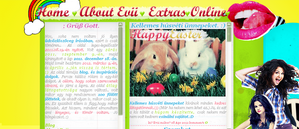 Új diziről? Odanéz, egy húsvéti-tavaszi kis kinézet! Hmm.. vizsgáljuk meg! 2 nyuszi és 2 Selena a fejlécen... Jó képválasztások, szép kivágások. Az alap, maga a táj szintén bejön, de a navigáció is szuper és a repdeső madárkák a kedvencek! *-* Illetve nagyon tetszik még a fejléc levágása, ahogy véget ér a fűvel és ott a talaj... ez egy remek ötlet volt, imádom! A kódolás.. Egyszerűre fogott, jó ki moduldobozokat látunk mind oldalt, mind középen. Szerintem jók így! A formázások nagyon jól feldobják az egyébként sötét kódolást, mindegyik okés. A rendezettség megvan, minden átlátható...Nekem összességében nagyon tetszik. Egyrészről nagyon tavaszias, másrészről a túlontúl vidám fejlécet a kódolás szépen egyensúlyba hozza. Így kell ezt! Piros pont az ötletre és pacsi a kivitelezésre, nem kérdés! Van összhatás, van szép összkép... mi kell még? Nekem elég ennyi... szép munka! ;)